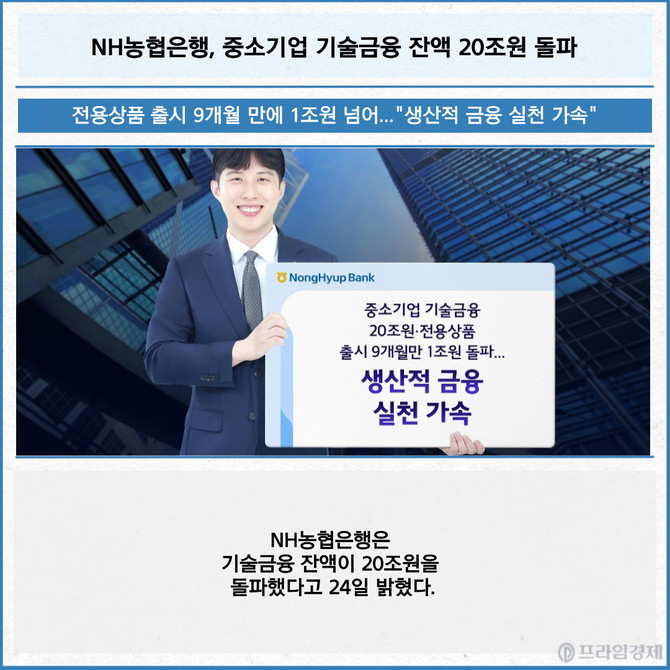 [프라임경제] NH농협은행은 기술금융 잔액이 20조원을 돌파했다고 24일 밝혔다.
