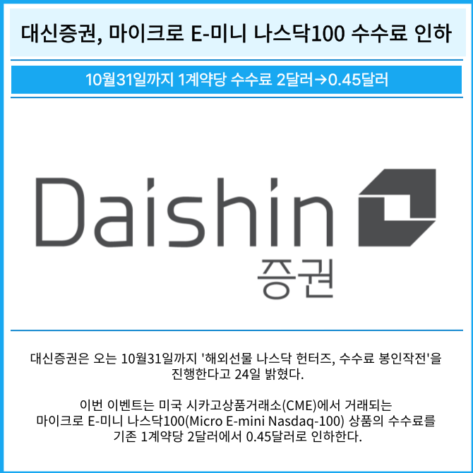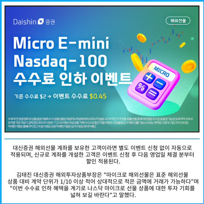 [카드] 대신증권, 마이크로 E-미니 나스닥100 수수료 인하