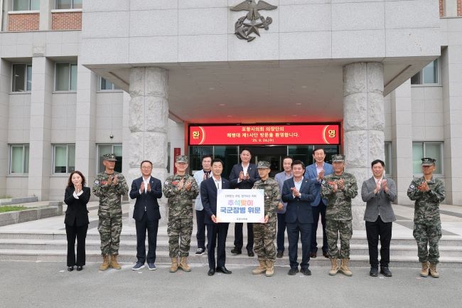 김일만 의장과 상임·특별위원장들은 이날 오전 해병대 제1사단·교육훈련단, 해군 항공사령부를 방문해 명절 연휴에도 국가를 위해 헌신하는 장병들의 노고를 격려하며 위문금을 전달했다.