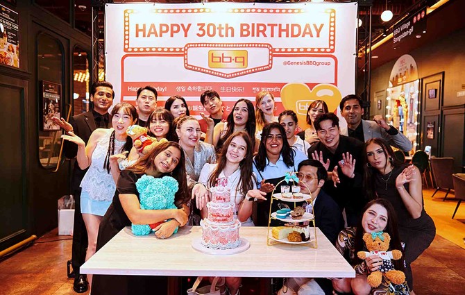 제너시스BBQ 그룹이 창립 30주년을 맞아 서울 송파구 'BBQ 빌리지 송리단길점'에서 글로벌 친플루언서(Chicken+Influencer)들과 함께 특별한 생일파티를 열었다.
