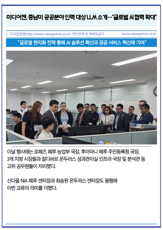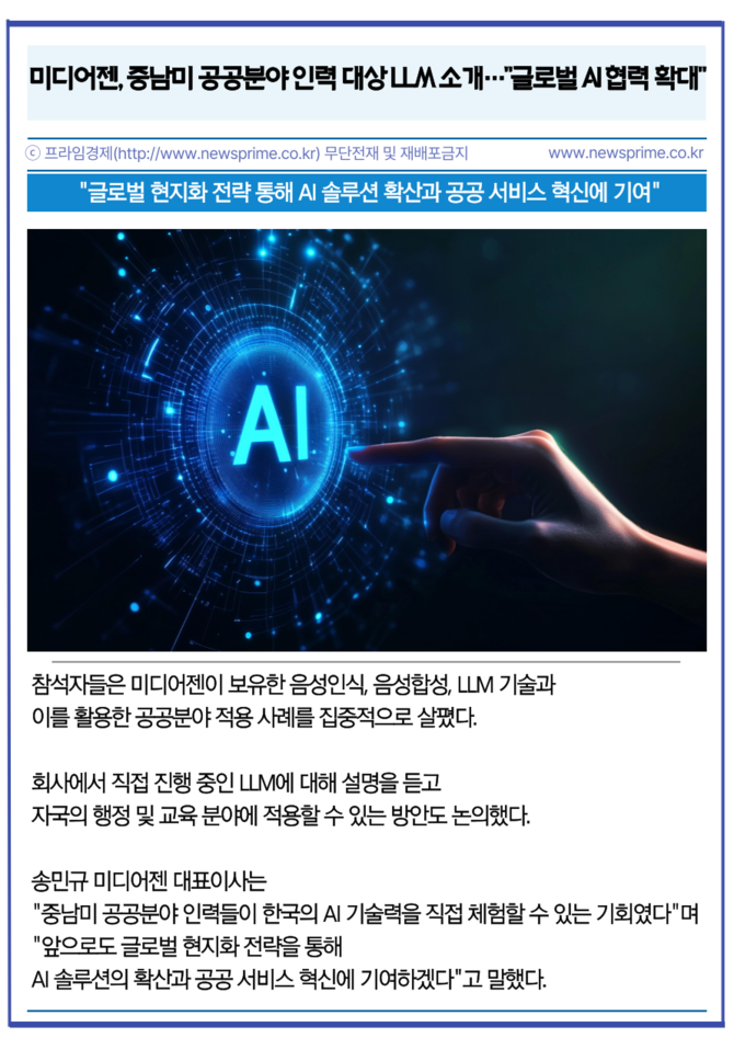 [카드] 미디어젠, 중남미 공공분야 인력 대상 LLM 소개…"글로벌 AI 협력 확대"