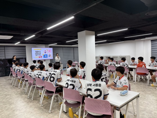 남해군은 지난 9일부터 24일까지 보물섬남해스포츠클럽 회원선수를 대상으로 '하브루타로 배우는 보물섬남해FC 경제교육'을 운영했다.