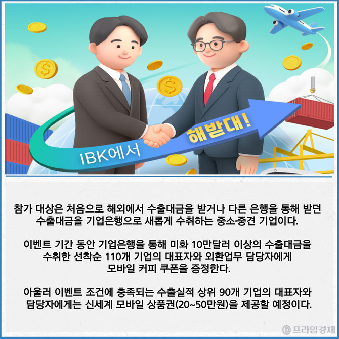 해외 수출대금 수취 기업 대상 선착순 경품 제공