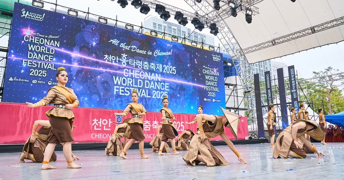 [프라임경제] 충남 천안에서 세계 각국의 춤을 한자리에서 만날 수 있는 '천안흥타령춤축제 2025'가 열리고 있다. 축제 개막 이틀째인 25일 천안종합운동장 일대는 화려한 퍼포먼스와 다채로운 춤 공연으로 방문객들의 눈길을 사로잡았다.