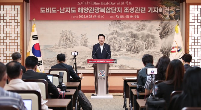 시는 지난 24일 충남도청 대회의실에서 충청남도, 한국농어촌공사, ㈜도비도특구개발, 대일레저개발㈜과 '도비도-난지도 해양관광복합단지 조성 업무협약'을 체결하고, 25일 당진시청 해나루홀에서 기자회견을 열어 사업 경과와 향후 계획을 발표했다.