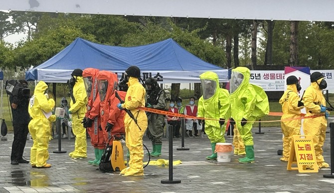 세부 훈련은 △의심 신고 및 상황 전파 △민간인 대피·통제 △초동 조치팀 현장 도착 △다중 탐지 키트 검사 및 검체 채취 △제독소·응급의료소 설치 △노출자 이송 △환경 제독 순으로 진행됐다. 특히 시나리오 설계부터 장비 운용, 도상훈련까지 실전 상황을 반영해 훈련 완성도를 높였다.