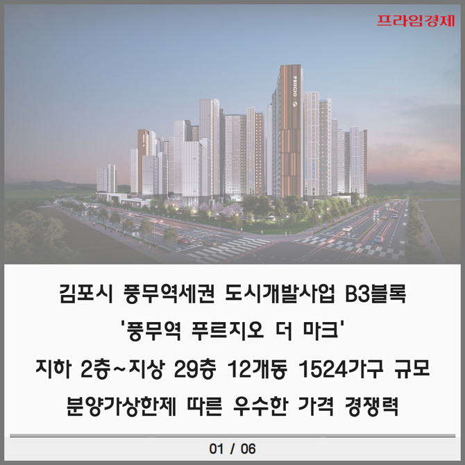 [프라임경제] 대우건설(047040)이 오는 10월 김포 풍무역세권 도시개발사업을 통해 '풍무역 푸르지오 더 마크'를 제시한다. 풍무역 초역세권인 동시에 합리적 분양가까지 적용되면서 실수요자‧투자자 모두 관심을 사로잡을 전망이다.