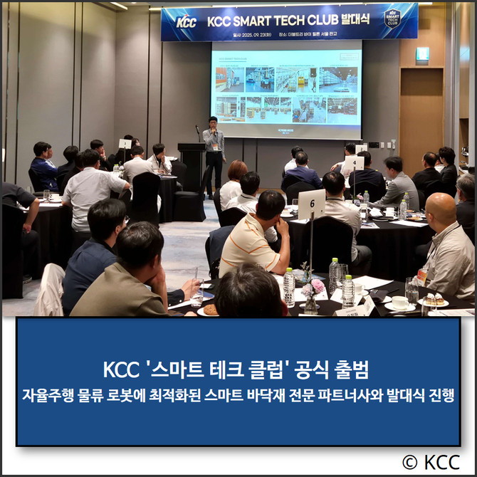 KCC는 스마트 바닥재 전문 파트너인 회원사들과 KCC 유통도료 사업부장 함성수 상무 등 임직원이 참석한 가운데 'KCC 스마트 테크 클럽(KCC SMART TECH CLUB)' 발대식을 열고 본격적인 운영에 들어갔다고 25일 밝혔다.