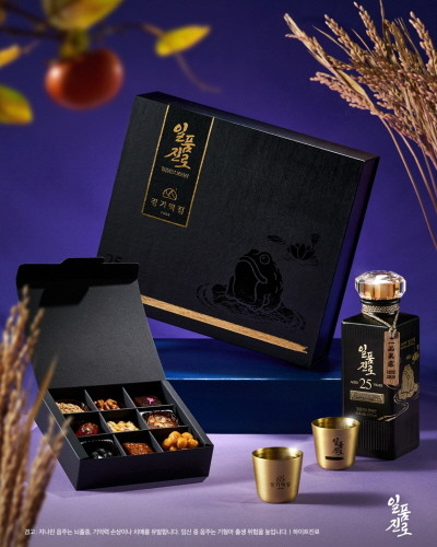 66년 전통의 경기떡집은 12년 연속 블루리본 서베이에 등재된 명가다. 하이트진로는 일품진로 25년산과 경기떡집의 전통 다과를 함께 구성해 명절 선물 가치를 높였다.