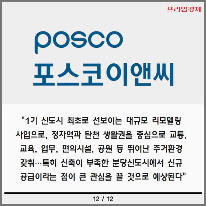[프라임경제] 느티마을 3단지 리모델링주택조합이 시행하고 포스코이앤씨가 시공하는 '더샵 분당티에르원'이 내달 분양을 돌입한다.