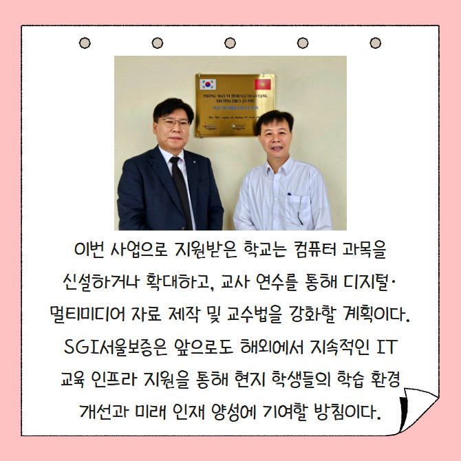 [카드] SGI서울보증, 베트남 학교에 IT 학습기기 지원