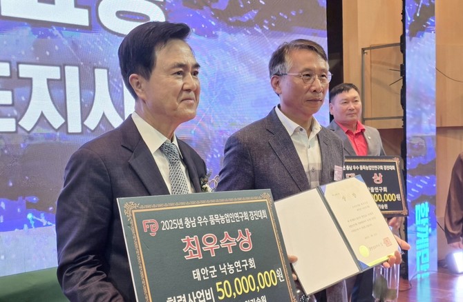 충남 태안지역 농업인들이 충남 농업의 중심에서 다시 한 번 저력을 과시했다. 군은 지난 25일 금산종합체육관에서 열린 '제5회 충청남도품목농업인연구회 전진대회'에서 태안군친환경농업연구회 엄영섭 회장이 '제9회 충남농업기술명인'에 선정되고, 태안군낙농연구회(회장 이찬우)가 충남우수품목연구회 최우수상(도지사상)을 수상하는 성과를 거뒀다고 26일 밝혔다.