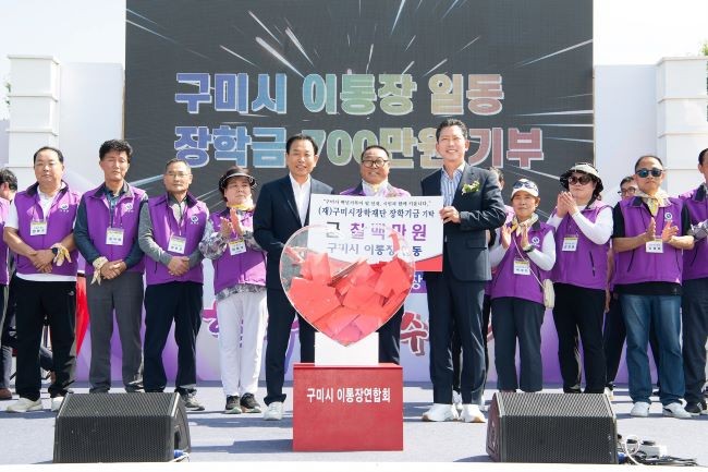 이날 행사에서는 이통장들이 자발적으로 모금한 장학금 700만원을 구미시에 전달하는 장학금 전달식이 진행됐다. 미래 세대를 위한 든든한 후원자로서 지역 인재 양성에 뜻을 모은 것이다.