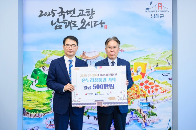 남해군은 지난 26일 LH경남지역본부(본부장 임도식)로부터 온누리상품권 500만원을 기탁받았다고 29일 밝혔다.