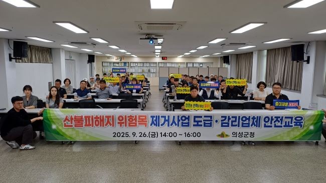 [프라임경제] 의성군(군수 김주수)은 지난 26일 군청 대회의실에서 산림사업법인, 산림기술엔지니어링, 관계 공무원을 대상으로 '산불피해지 위험목 제거사업 특별 안전교육'을 실시했다.