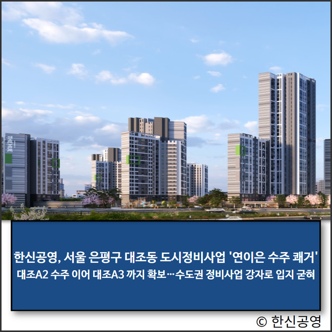 한신공영(004960)이 서울 은평구 대조동 가로주택 정비사업에 연이어 성공하며 수도권 도시정비사업 부문에서의 경쟁력을 과시하고 있다.
