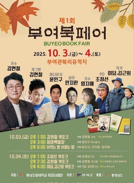 [프라임경제] 충남 부여군(군수 박정현)은 충남도립대학교 RISE 사업단과 함께 오는 10월3일부터 4일까지 이틀간 관북리 유적 일원에서 '제1회 부여 북페어(Book Fair)'를 개최한다고 밝혔다.