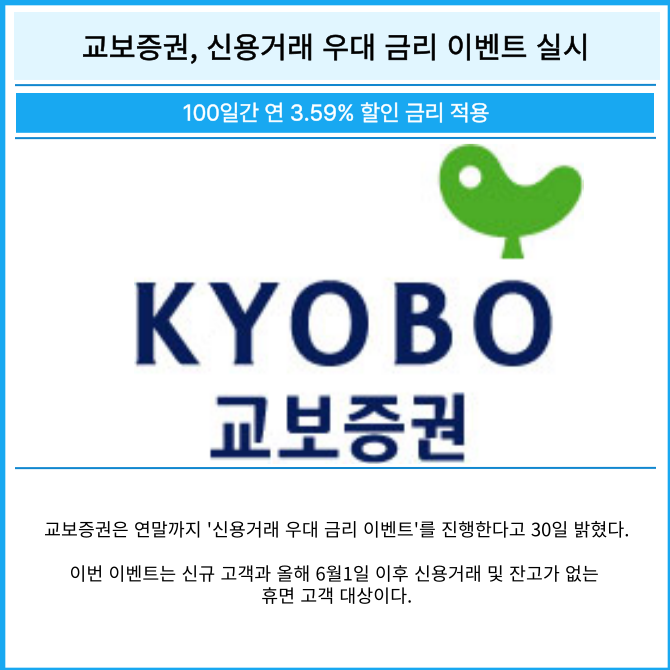 [카드] 교보증권, 신용거래 우대 금리 이벤트 실시