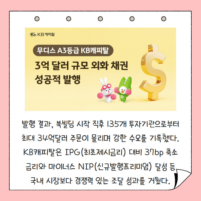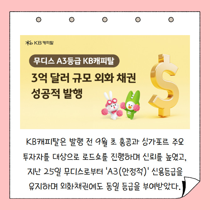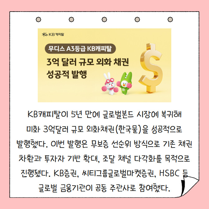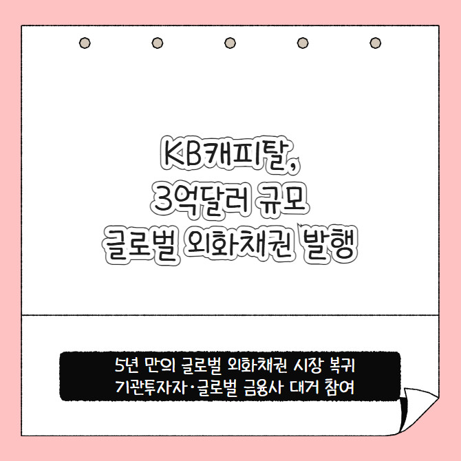 [카드] KB캐피탈, 3억달러 규모 글로벌 외화채권 발행