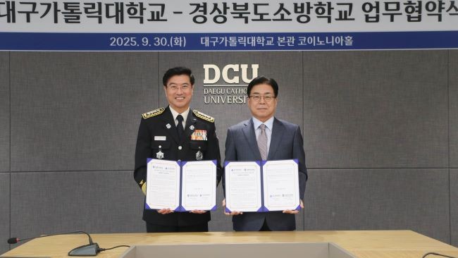 대구가톨릭대학교와 경상북도소방학교(학교장 이상무)가 지역과 함께 만드는 혁신과 상생의 미래를 위해 손을 맞잡았다.