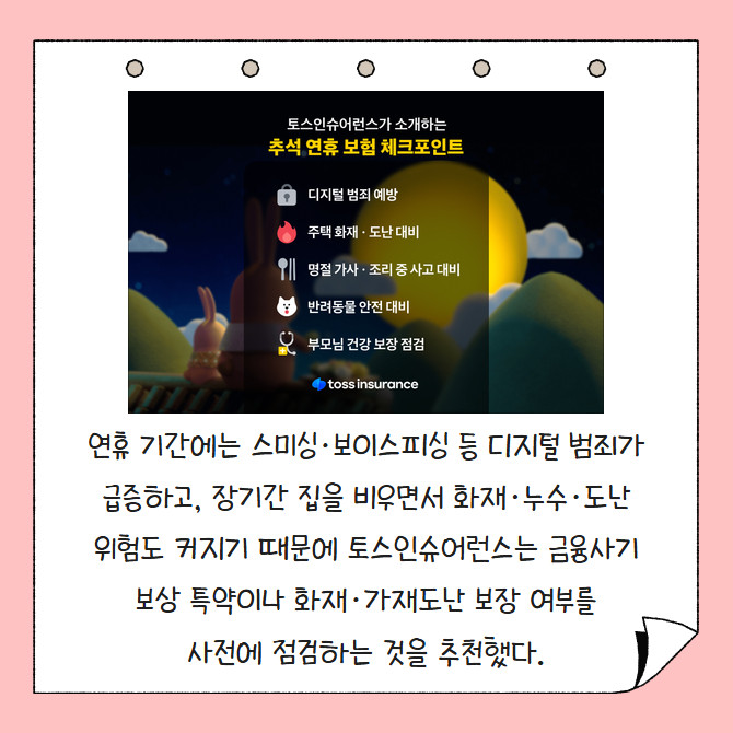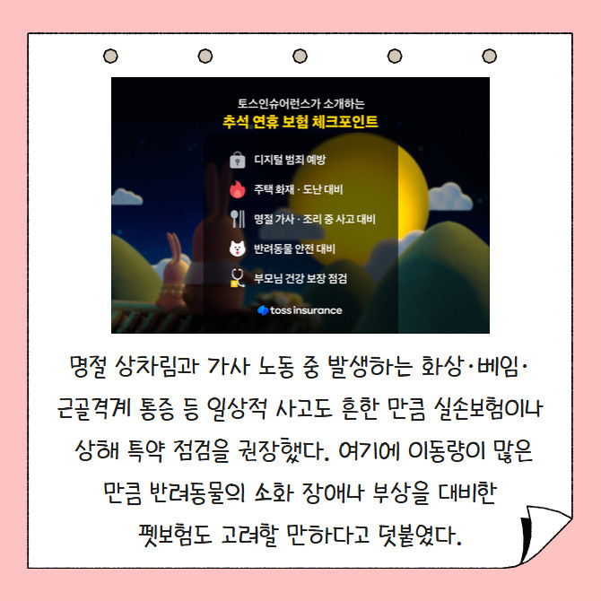 [카드] 토스인슈어런스, 추석 연휴 보험 체크포인트 제안