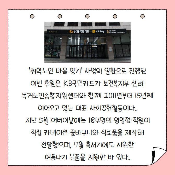 [카드] KB국민카드, 추석 맞이 취약노인 마음잇기 봉사