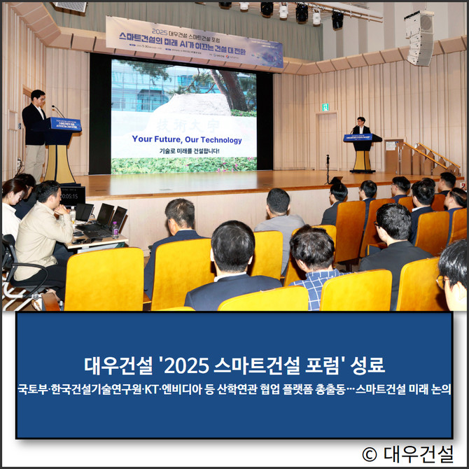 지난달 30일 대우건설은 '기술로 미래를 건설합니다'라는 슬로건 아래, 서울 을지로 본사에서 개최한 '2025 대우건설 스마트건설 포럼' 행사를 성황리에 마쳤다.
