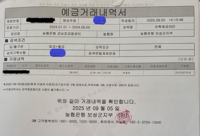실제 금융자료에 따르면, 떡을 요청한 주민은 이후 K씨 계좌로 6만9000원 전액을 송금했다.