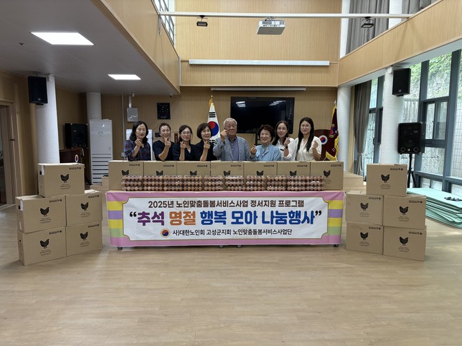 대한노인회 고성군지회(지회장 최종림)는 9월29일, 추석 명절을 맞아 노인맞춤돌봄서비스 대상 어르신 전원에게 위문품(계란)을 전달하고 안전관리 교육 및 안부 확인 활동을 실시했다고 2일 밝혔다.