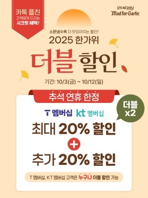엠에프지코리아(MFG KOREA)가 운영하는 매드포갈릭이 추석을 맞아 풍성한 혜택을 담은 '2025 한가위 통신사 더블 할인' 프로모션을 진행한다.