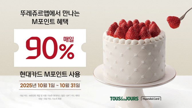 CJ푸드빌이 운영하는 뚜레쥬르가 현대카드 이용 고객을 대상으로 'M90 프로모션'을 오는 10월31일까지 진행한다.
