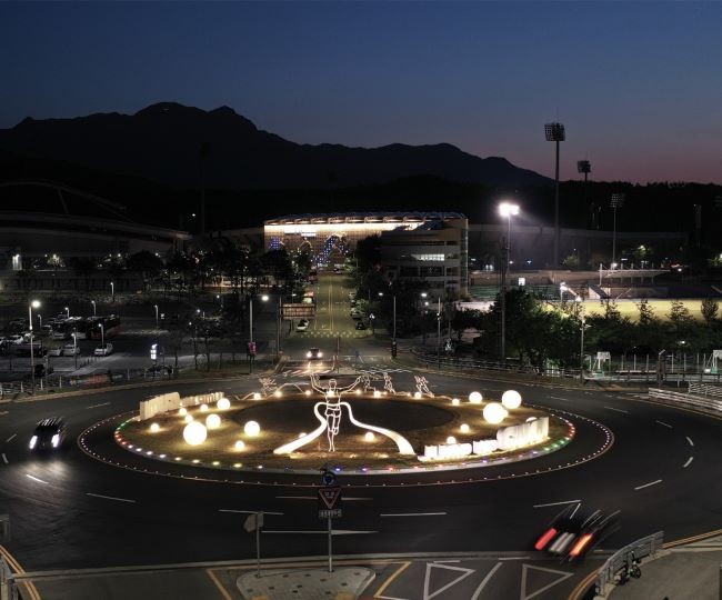 시민운동장 메인 파사드, 주경기장 출입부 색채 적용, 회전교차로 경관 조성, 유휴공간 쉼터조성 등은 국제행사 개최 도시를 상징하는 새로운 디자인을 제시해 시민과 방문객의 시선을 사로잡았다.