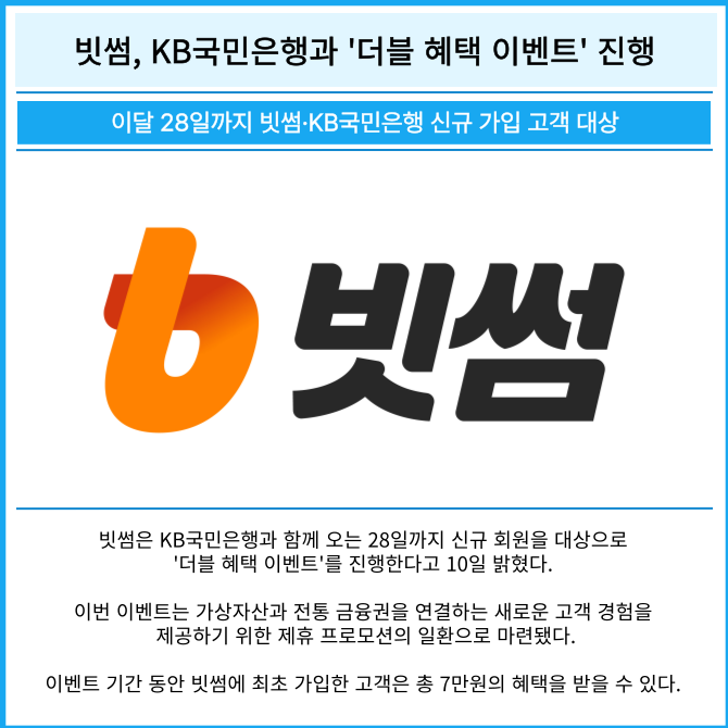 [카드] 빗썸, KB국민은행과 '더블 혜택 이벤트' 진행
