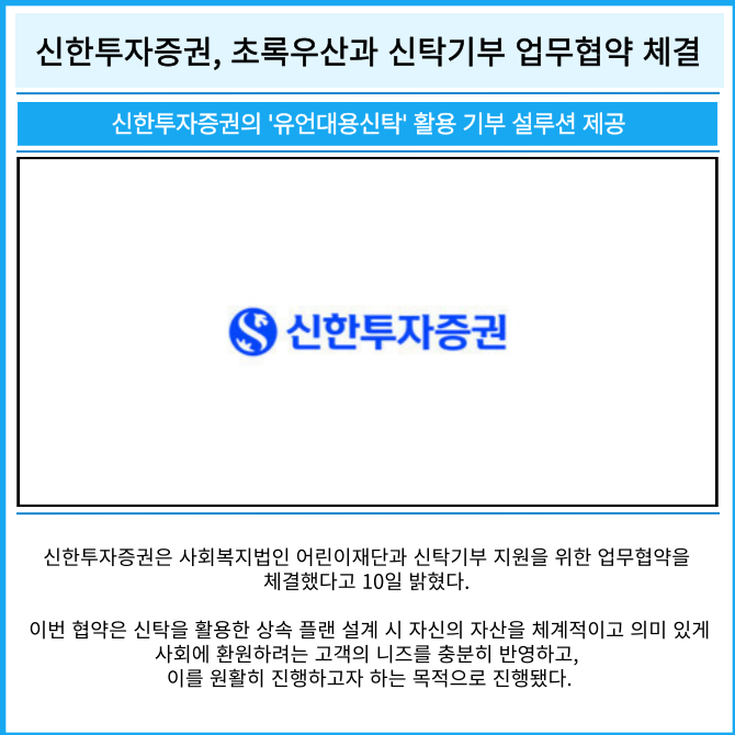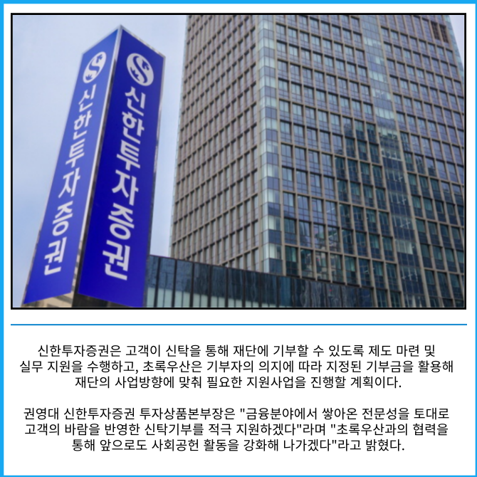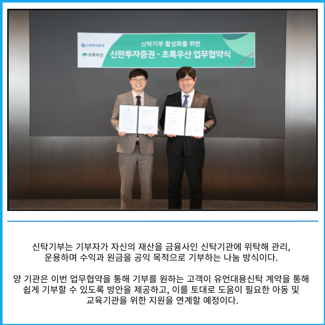 [카드] 신한투자증권, 초록우산과 신탁기부 업무협약 체결