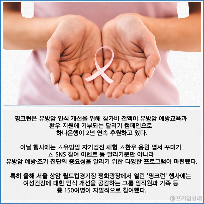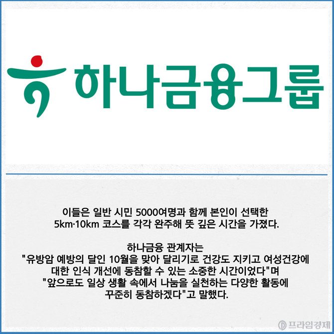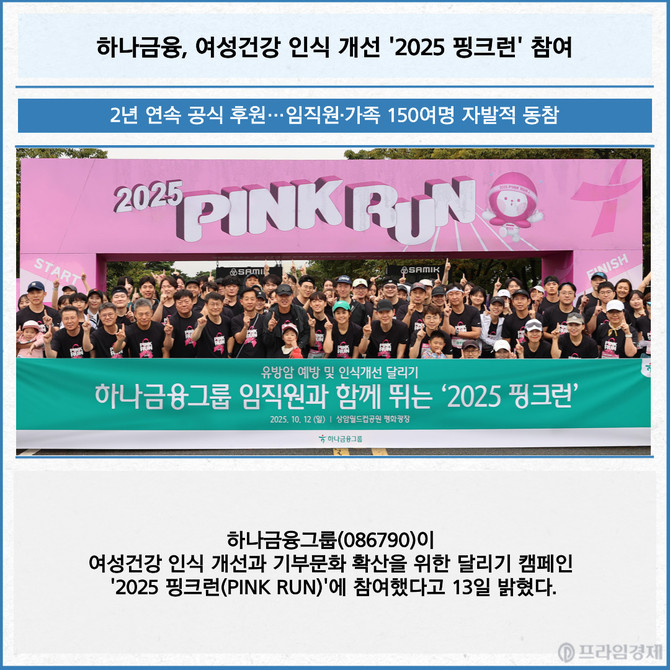 [프라임경제] 하나금융그룹(086790)이 여성건강 인식 개선과 기부문화 확산을 위한 달리기 캠페인 '2025 핑크런(PINK RUN)'에 참여했다고 13일 밝혔다.