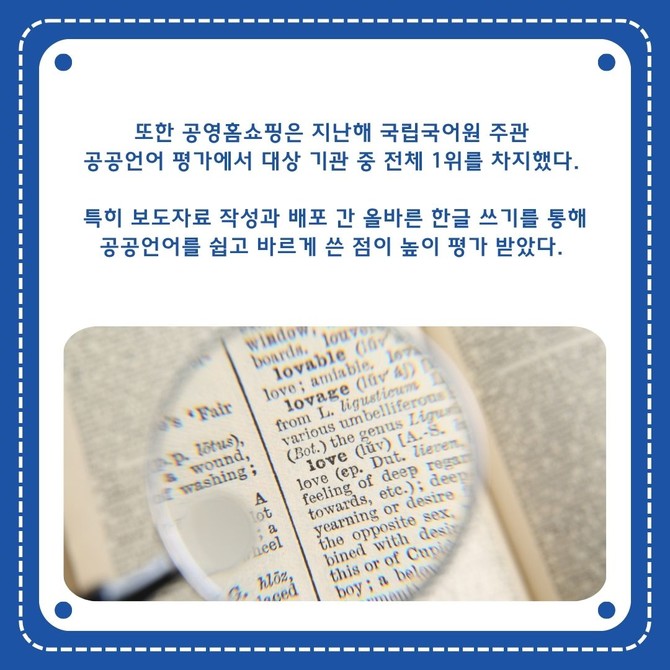 [카드] 공영홈쇼핑 '공공기관 공문서 평가' 공공기관 1위 선정