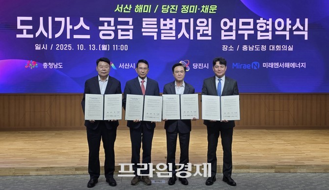 [프라임경제] 충남 당진시(시장 오성환)는 13일 충남도청 대회의실에서 충청남도, 미래엔서해에너지와 함께 '도시가스 공급 특별지원 업무협약(MOU)'을 체결했다고 밝혔다.