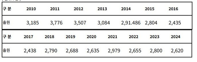특허·실용신안 통계를 살펴보면 2017년 이후 기후테크 출원은 연평균 2700건 안팎으로 정체돼 있다. 반면 같은 기간 전체 특허 출원은 21만건에서 24만건대로 늘었다. 기술 경쟁이 치열해지는 가운데, 국내 기후테크 분야는 오히려 비중이 줄어든 셈이다.