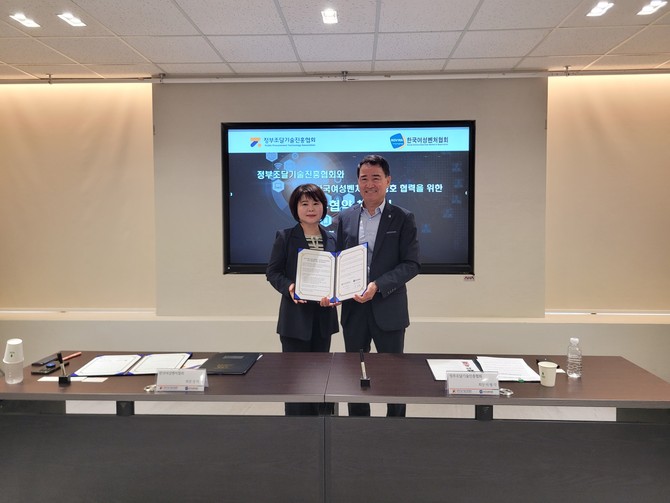 15일 한국여성벤처협회(회장 성미숙)·정부조달기술진흥협회(회장 이형각)는 지난 14일 '여성벤처기업의 조달시장 경쟁력 강화 및 지속가능한 성장'을 위한 업무협약(MOU)을 체결했다고 밝혔다.