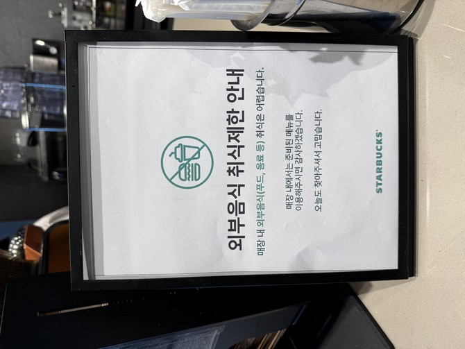 스타벅스 코리아 관계자는 "모든 고객이 쾌적한 환경에서 매장을 이용할 수 있도록 외부 음식 및 음료 취식 제한을 시행하게 됐다"며 "매장 내 위생과 질서 유지를 위한 조치"라고 설명했다.