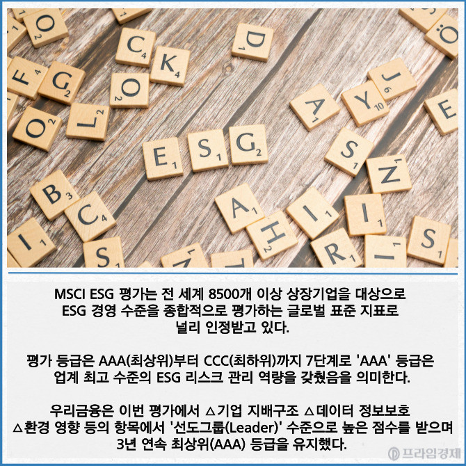 [카드] 우리금융, MSCI ESG 평가 3년 연속 'AAA등급'