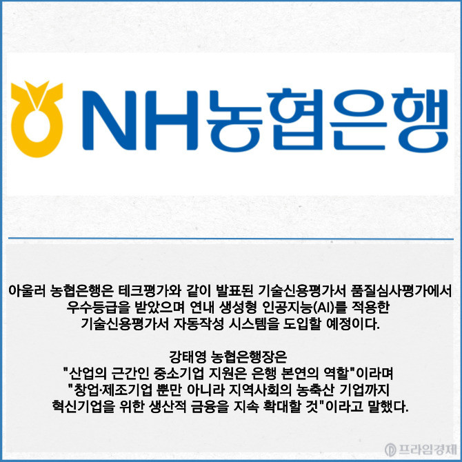 [카드] 농협은행, 금융위 테크평가서 기술금융 경쟁력 입증