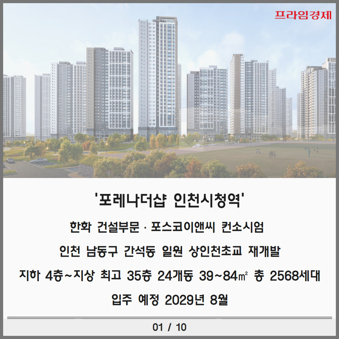 [프라임경제] 한화(000880) 건설부문·포스코이앤씨 컨소시엄이 오는 11월, 인천 남동구 간석동 일원에  '포레나더샵인천시청역'을 제시하며 인천 내 성공 신화를 이어간다.