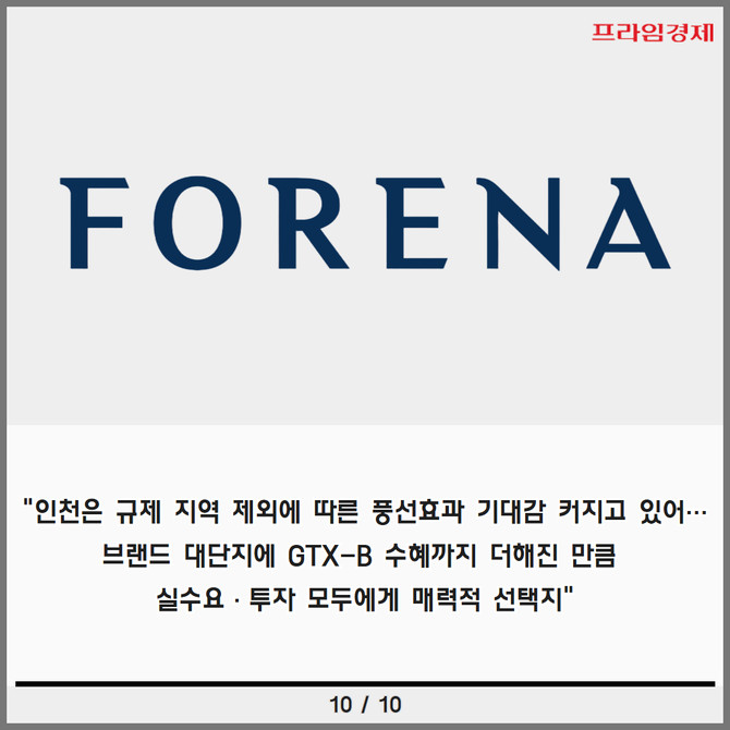 [카드] 포레나더샵 인천시청역, 인천 新주거타운 재편 중심축
