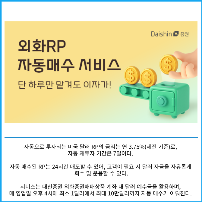 [카드] 대신증권, 미 달러 RP 자동 매수 서비스 출시