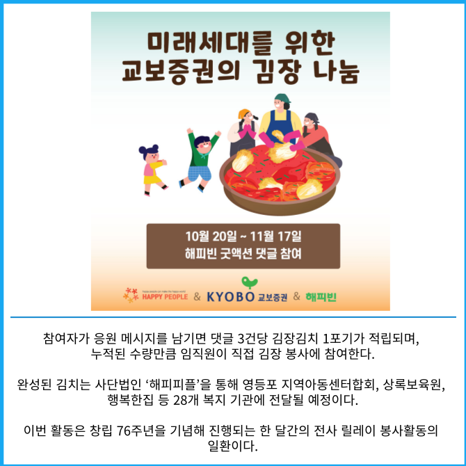 [카드] 교보증권, 창립 76주년 김장 나눔 캠페인 실시