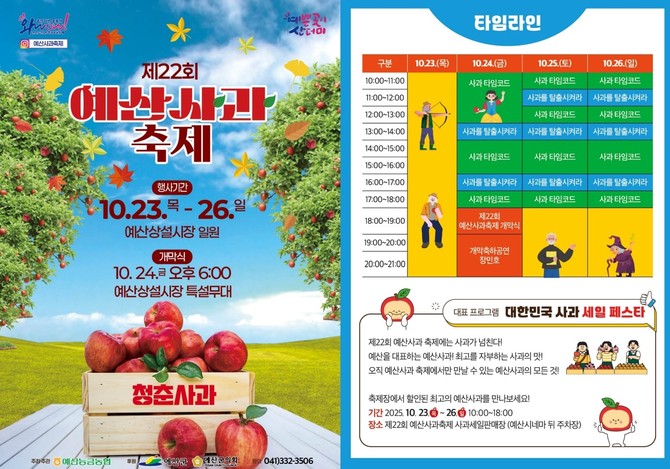 올해로 22회를 맞는 이번 축제는 사과로 만든 달콤한 디저트와 체험형 공간 '애플공원(애플파크)' 등으로 꾸며져, 기존 축제보다 한층 새롭고 다채로운 분위기로 진행된다.