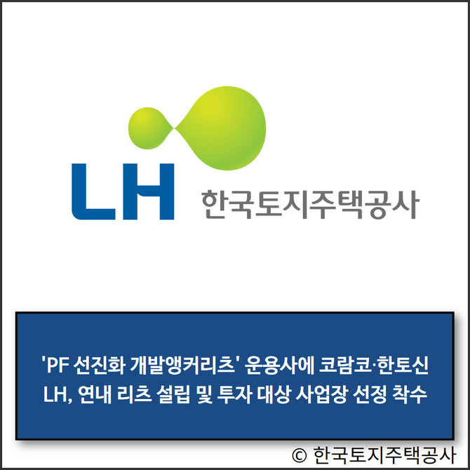 한국토지주택공사(LH)가 22일 '프로젝트파이낸싱(PF) 선진화 마중물 개발앵커리츠' 운용을 담당할 자산관리회사(AMC) 우선협상대상자로 코람코자산신탁과 한국토지신탁을 선정했다고 밝혔다.