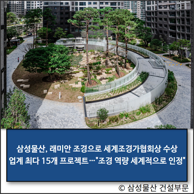 삼성물산(028260) 건설부문(이하 삼성물산)이 세계조경가협회상을 총 15회 수상하며 독보적인 조경 역량을 입증했다.