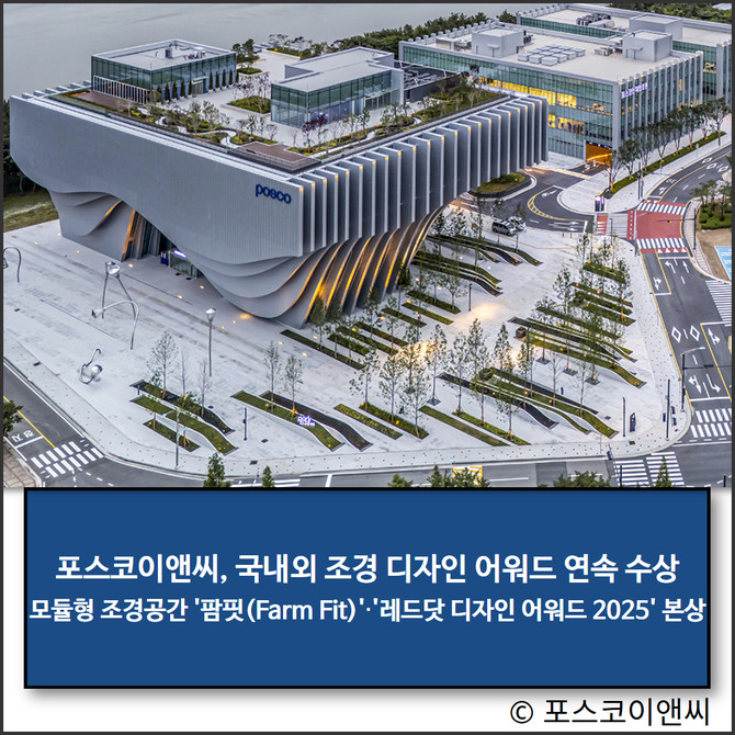 포스코이앤씨가 국내외 주요 디자인 어워드에서 잇따라 수상하며 글로벌 조경 디자인 리더십을 입증했다.